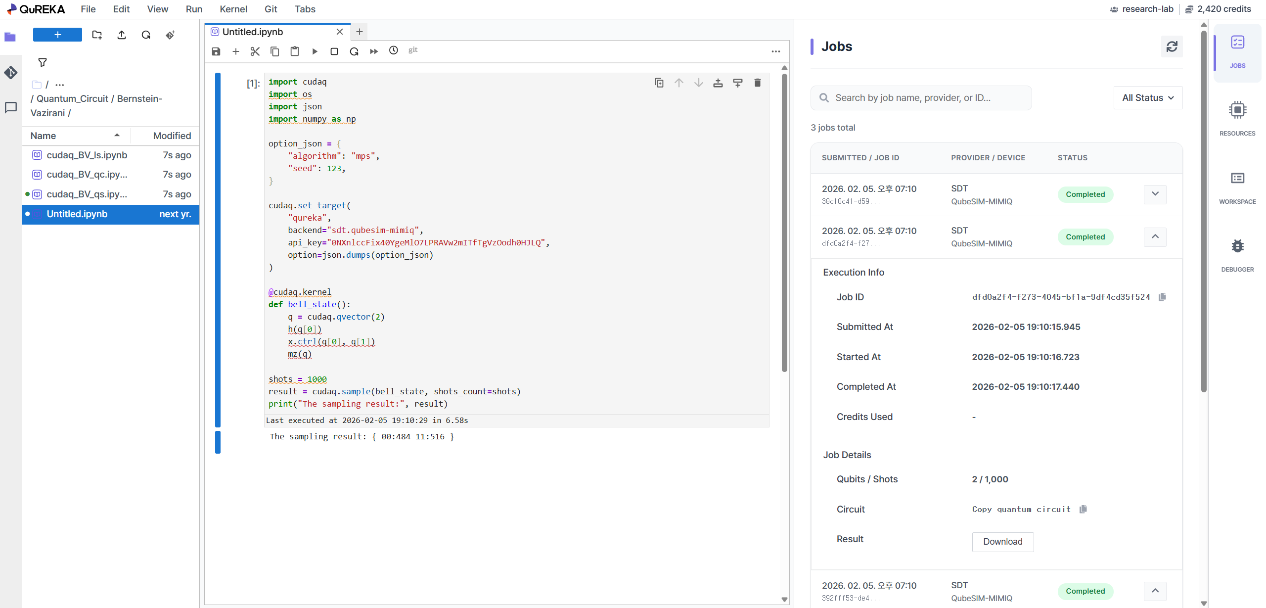 Let’s walk through the process of requesting quantum jobs and verifying the results on QuREKA.