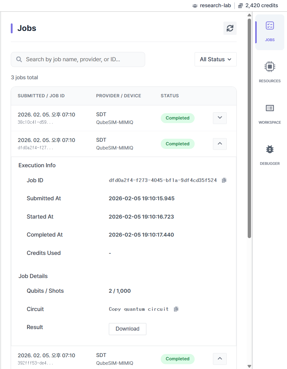 Task (Job Monitoring): Monitor the real-time status and success/failure of your submitted quantum jobs.