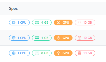 Select Specifications (SPEC): First, select the server specifications (SPEC) you wish to use.